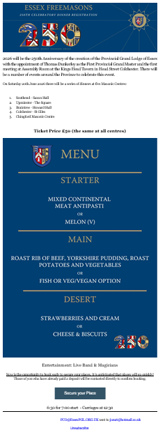 Celebrating 250 Years of Essex Freemasonry Share this:Tweet Print (Opens in new window) Print Email a link to a friend (Opens in new window) Email Related
