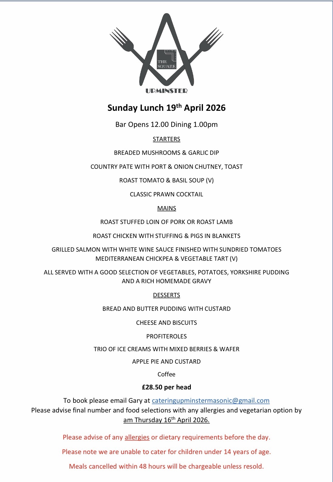 The Square @ Upminster – Sunday Lunch 19th April 2026 Screenshot Screenshot Share this:Tweet Print (Opens in new window) Print Email a link to a friend (Opens in new window) Email Related