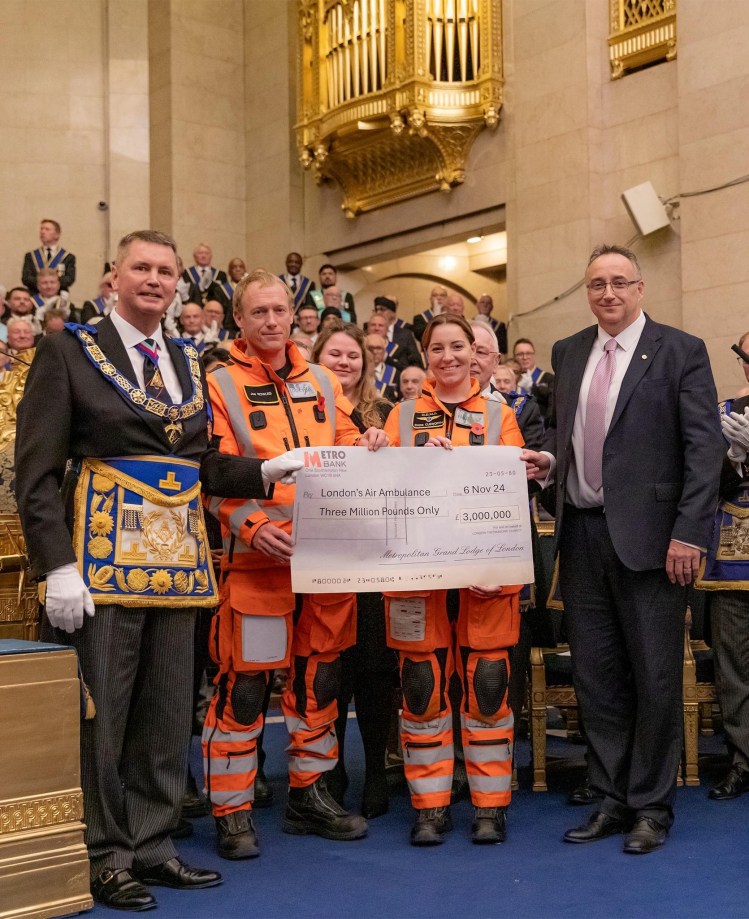 Our Worshipful Master Jon Turner giving a donation of £500 to Worshipful Brother Laurie Bourne, Worshipful Master of Redbridge Lodge 7145 for their relief chest & Fest 2022. This was raised from the joint outing/raffel to tour Grand Lodge with family & friends.